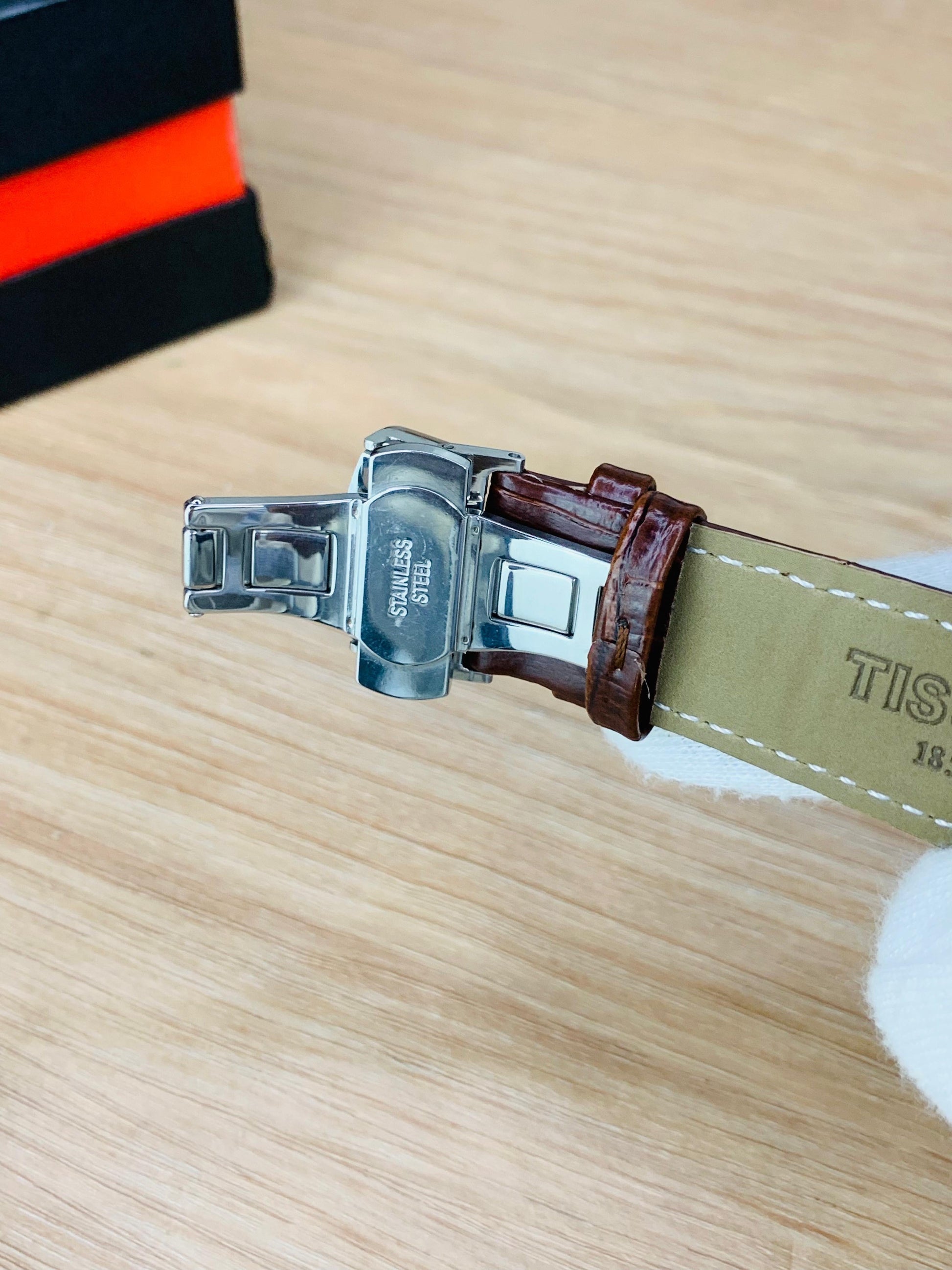 Classic Chronograph Watch with Textured Leather Strap and Multifunction Dial